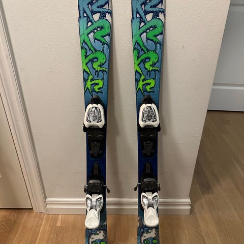 Ett par lättåkta barnskidor med tillhörande stavar, perfekta för nybörjare som vill lära sig åka skidor. Smidiga och stabila skidor som passar bra för lek och enklare skidåkning.