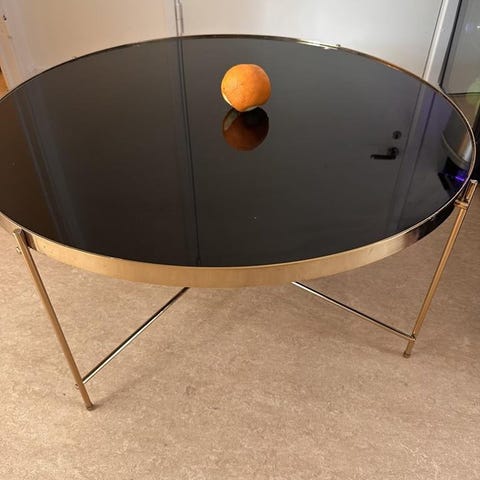 Ett bord med bordsskiva i trä och svarta ben med metal detaljer. Vi säljer bordet eftersom vi ska flytta. Finns lite vattenskada men är helt okej annars. Bara hämta upp i Sala backe