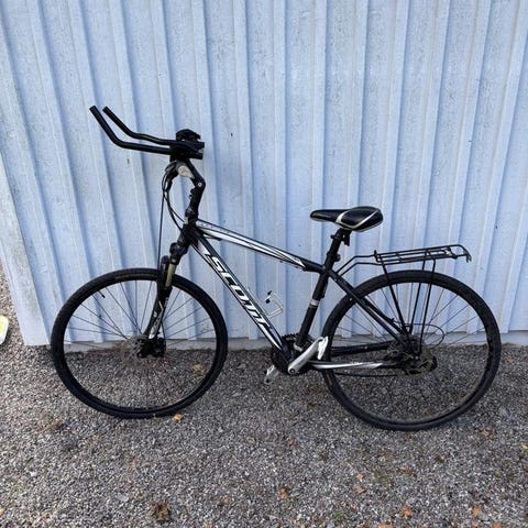 Scott Hybridcykel för herrar. Cykeln är anpassad för blandad terräng och stadscykling, med en ram och komponenter som passar för mångsidig användning.