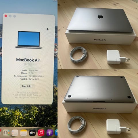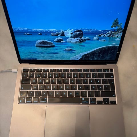 Hej, säljer nu min MacBook Air 13 tum med M1 chip. Den har 512GB SSD och 8GB ram. Årsmodellen är 2020. Båda portarna funkar perfekt, men det finns ett litet avstånd mellan kabeln och chassit när man kopplar in till ena porten.