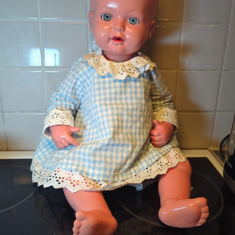 Allt är helt och för sin ålder i fint skick förutom att den är solblekt. Suffletten har använts flitigt under sommaren och skyddat barnen från solen.