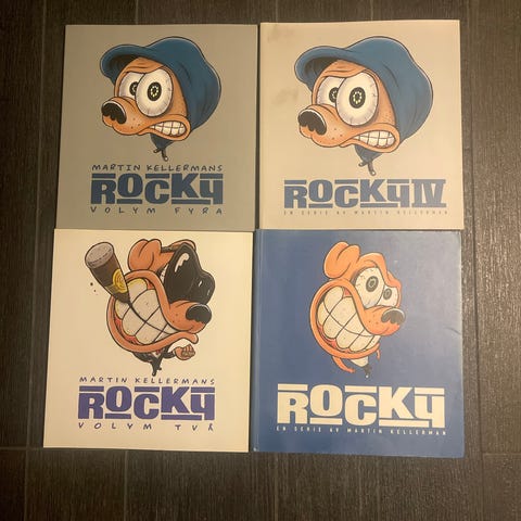 Rensar i hyllan och säljer en rejäl samling med 36 stycken Rocky Magasin. Här finns timmar av garanterade skratt med Martin Kellermans klassiska serier, gästspel och extramaterial som bara finns i tidningarna.