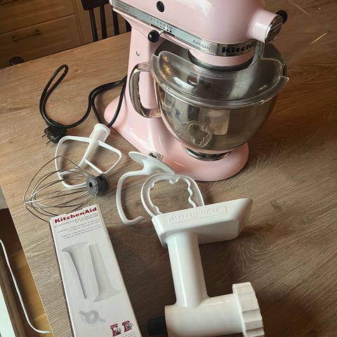 Kitchen Aid köksmaskin med samtliga originaltillbehör + glasskål (att frysa ner och göra egen glass) säljes. Mycket fint skick, funkar strålande. Säljes pga platsbrist. Glasskålen endast använd en två gånger. Finns i Sundsvall.