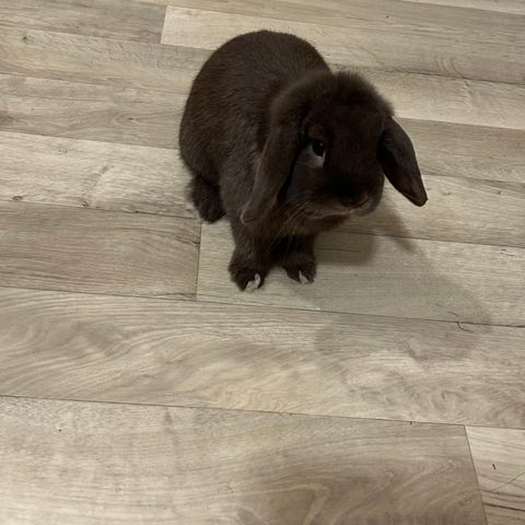 Okastrerad kaninhane 1,5år, endast bott ute, söker nytt hem med en kaninkompis.