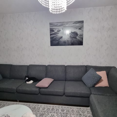 Grå soffa (inköpspris ca 7000 kr) som använts i djurfritt kontor. Helt ok skick, har haft en filt över sig nästan jämt. Bra soffa! Benen behöver skruvas åt lite hårdare bara. Hämtas på Södermalm innan nyår.
