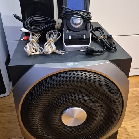 - Bestyckning: 1× 14 cm bas, 1 × 7 cm mellanregister, 1 × 2,5 cm diskant