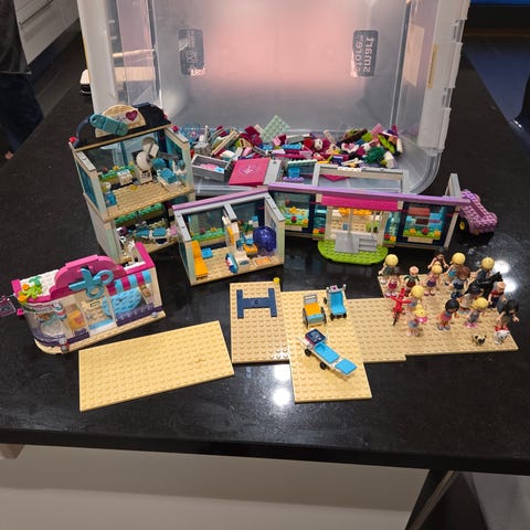LEGO Friends byggleksaker med olika färgglada delar och bitar i plast. Passar för kreativ lek och konstruktion.