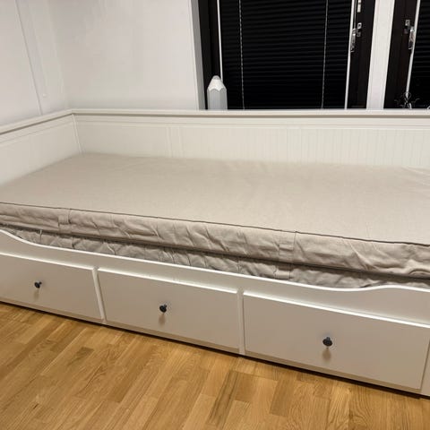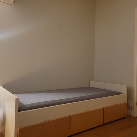 Sängstomme vevelstad 90×200 med resårbotten höväg och bäddmadrass Horness från ikea alltihopa. Allt är inköpt för 2 år sedan så är i mycket bra skick men måste säljas pga flytt.