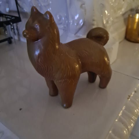 Figurin. Mari Simmulson. UE. Glaserat stengods. OBS. Lagad fot (se bild). I övrigt bra skick. Höjd 21 cm. Signerad Mari Simmulson. Lagningen är perfekt utförd.