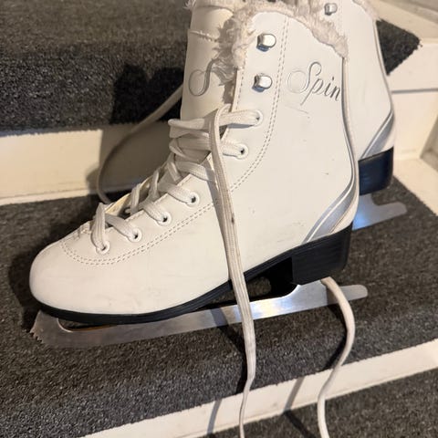 Spin barnskridskor i storlek 32 med vit färg. Skorna är avsedda för övriga skridskosporter och har en mjuk, foderliknande insida för komfort.