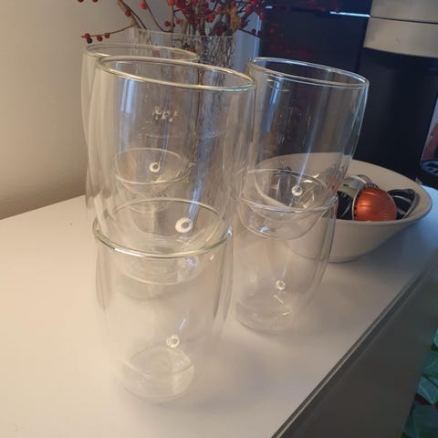 Bodum kaffe- och tekanna i glas med handtag och lock i svart plast. Inkluderar korkunderlägg för varje kanna. Passar för servering av kaffe, te eller glögg.