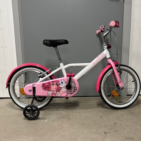 barncykel i blå färg. Cykeln har 16 tums hjul