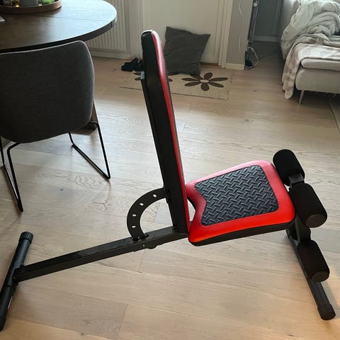 Träningsbänk med bicepscurl och benpress