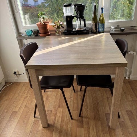 Vi säljer vårt charmiga matbord i "shabby chic"-stil. Bordet är byggt i massivt trä och har en lantlig romantisk känsla med vackra detaljer. Bordet rymmer med lätthet 8 personer och är köpt på Noll54 Interiör i Karlstad för ca 10 år sedan. Nypris ca 10 000 kr.