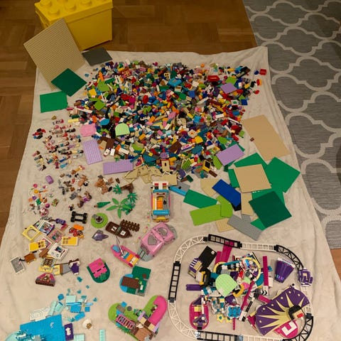 LEGO Friends andra LEGO-set som inkluderar flera 3 stora förvaringslådor och en liten i olika färger, ett stort antal LEGO-delar och figurer. Setet innehåller bygginstruktioner och olika tillbehör för att bygga och leka med LEGO Friends-tema. OBS, kan inte garantera att alla byggsatsbitar finns i lådorna.
