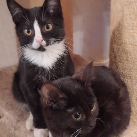Nu är vi 12 veckor och vill flytta hemifrån. Vi är uppfödda på kvalitetsfoder, avmaskade och rumsrena. Vi är vana vid andra katter, hundar och barn. Vi är korsning mellan norskskogkatt, maincoon och huskatt. Det är 6 långhåriga och två korthåriga.