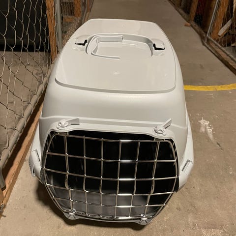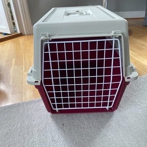 Bur i plast med öppningsbar topp och lucka i metall för mindre djur som katter, kaniner, marsvin och hundvalpar. Går att stapla på varandra vilket underlättar om man har flera djur med sig.