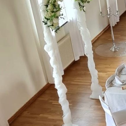 Rund vit bröllopsbåge från partykungen. 2 meter i diameter. Använd en gång. Priset kan diskuteras vid snabb affär.