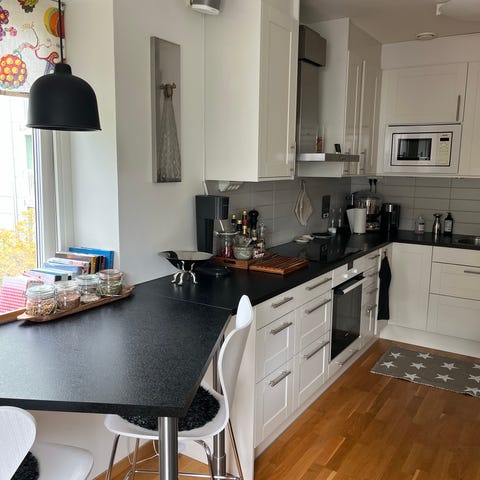 Fint och rejält kök säljes. Vitt med svarta beslag.