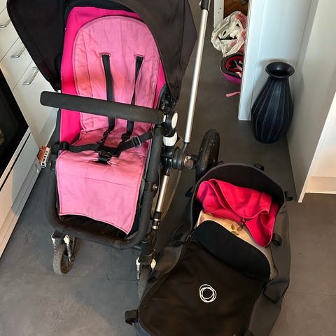 Bugaboo barnvagn i svart färg. Inkluderar sittdel med säkerhetssele och avtagbar bygel. Passar för barn och är tillverkad med material anpassade för barnvagnar. Ingår, sittdyna, regnskydd, åkpåse samt en extra sittdel men där bygeln gått av men finns att köpa reservdelar.