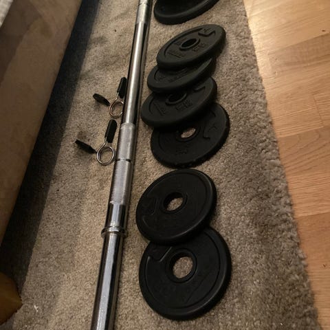 Allt är sparsamt använt och i gott skick. Perfekt för styrketräning hemma – passar både nybörjare och mer vana tränande.