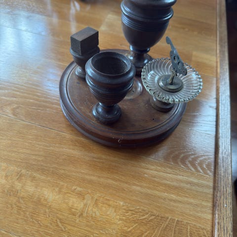 Snygg pennhållare med svart mugg, och en ljusgrå / marmorfärgad dödskalle som passar exakt runt muggen.
