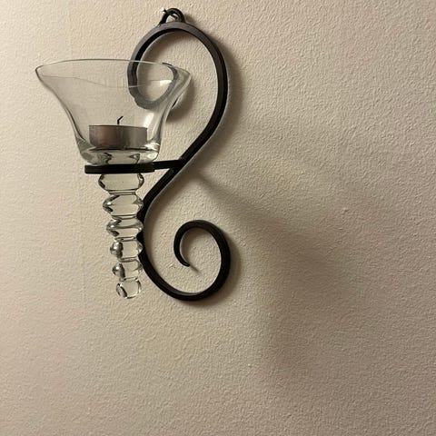 Ljustake i smide med en grön glaskupa för värmeljus eller för ett vanligt lite tjockare ljus