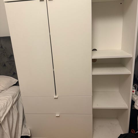 Praktisk och kompakt garderob som har plats för båda vikta och hängande kläder på en liten golvyta.