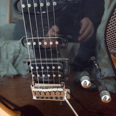 Rätt misshandlad och sliten som bilderna avslöjar. Någon hemmagjord skallupering och försök på replikering kanske?. Den låter och spelar dock helt underbart och håller stämningen sjukt bra!