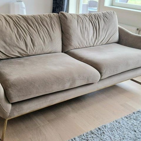 Tidlös 3-sits soffa med blommönstrat tyg i beige, brunt och blått. Soffan har en rundad rygg och ben i ek. Inköpt april 2024 och mycket sparsamt använd. Finns för avhämtning centralt i Söderköping, hiss finnes. Mer info hos Möbelmästarna: