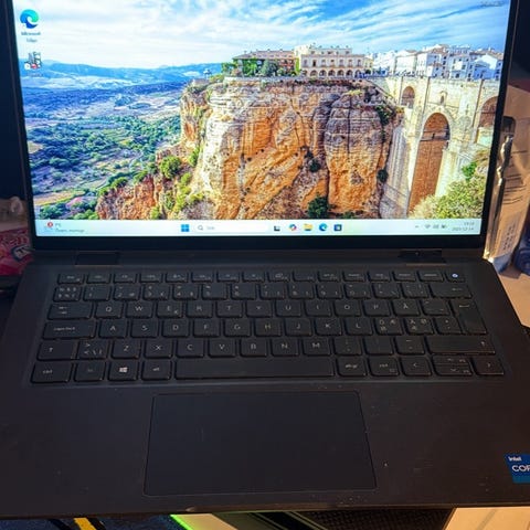 Dell bärbar dator med en 14 tum skärm i svart färg. Utrustad med Intel Core i5-1135G7 processor på 2,40 GHz, 8 GB DDR4 RAM och en 256 GB SSD hårddisk. Operativsystemet är Windows 11 Pro 64-bit. Grafiken hanteras av Intel Iris Xe Graphics. Tangentbordet har bakgrundsbelysning. Observera att datorn har skador på hörnet av chassit. Det är en hel vikbar skärm så du kan använda de som en surfplatta det är touch s