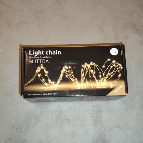 Glansa Light Chain Ljusslinga 5 meter lång ljusslinga med varmvit LED-belysning. Slingan är utrustad med transformator för anslutning till elnätet. Passar för inomhusbruk under julperioden.