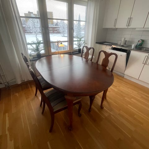 Säljer ett matbord med 4 stolar, stolarna är stabila