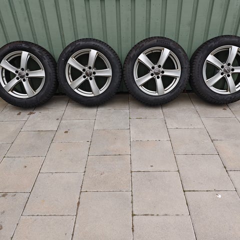 Säljer vårt kompletta set av vinterdäck + fälg som är sparsamt använda och är i mycket bra skick.