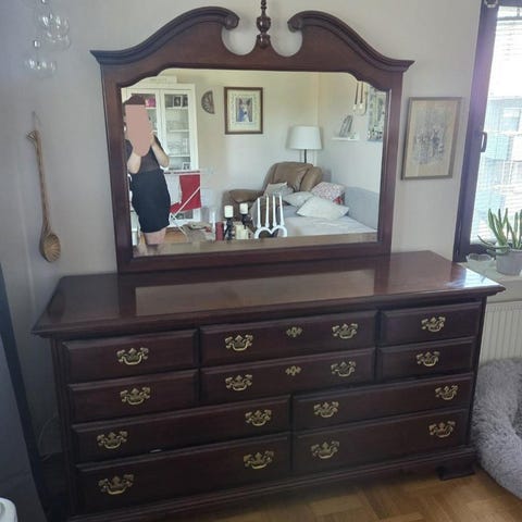 Säljer vår älskade furubyrå på grund av flytt till mindre boende. Fantastiskt fint skick, även inuti. Köpt på auktion för några år sedan och väl omhändertagen, har mest använts för att förvara sängkläder.