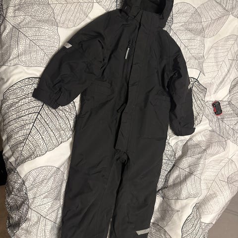 Varm men ändå smidig overall för kallare årstid. Fin grönblå färg med hela reflexer och fotstroppar. Enkel att ta av och på med lång dragkedja. Två fickor. Luva med lurv.