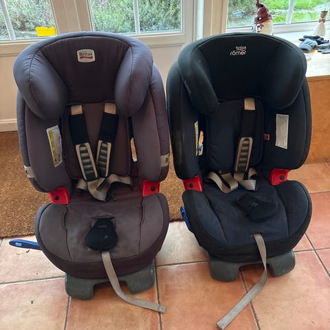 2st bilbarnstolar från BeSafe och Britax Römer för 0-25kg, perfekt för er med 2 bilar. Tyget är avtagbart och går att tvätta.