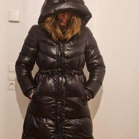 Varm skön och lång jacka från cappuccini. Avtagbar huva.