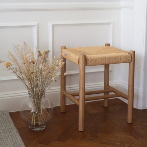 Trevlig Nyomklädd pall med trästomme. Lintyg Stensöta. Baker. Stadig och fin.