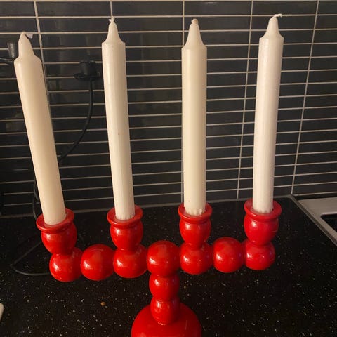 Enl. etiketter på undersidan. Stearinljus ingår inte. 23 cm hög utan ljuset.