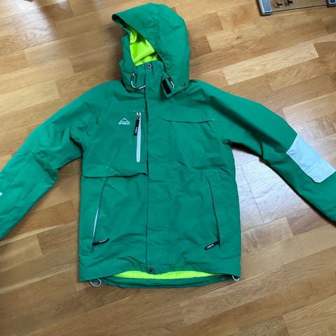 Jackan har bla liftkortsficka på vänster arm. Kläderna är använda men i bra skick och utan defekter. De är använda ca 14 dagar i fjällen av vår dotter.