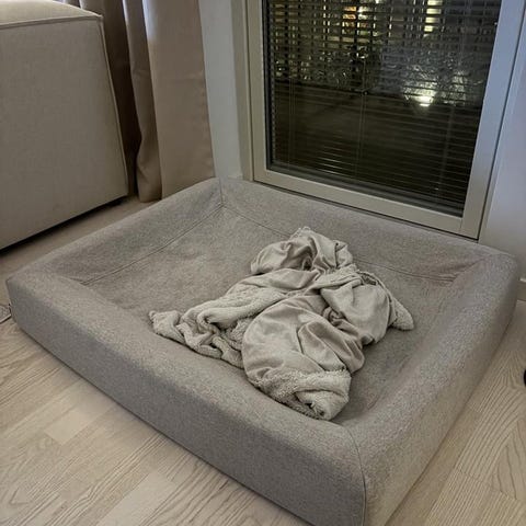 Nytt mullvadsfärgat överdrag köpt i mars 2025.