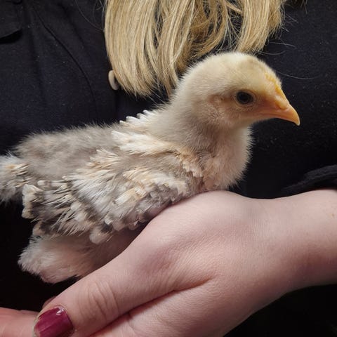 Blandras kycklingar från bla olivgröna ägg. Kläckta 7/12.