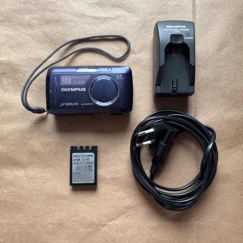 Olympus digitalkamera i silverfärg. Kompakt design med inbyggd skärm och handrem. 10 super optical zoom, 4,2-42mm. Batteri samt Minneskort ingår!