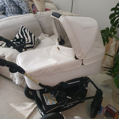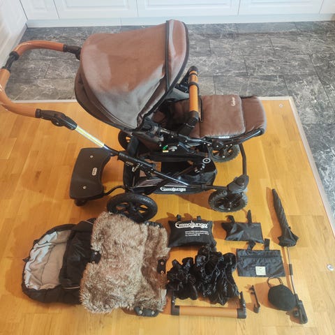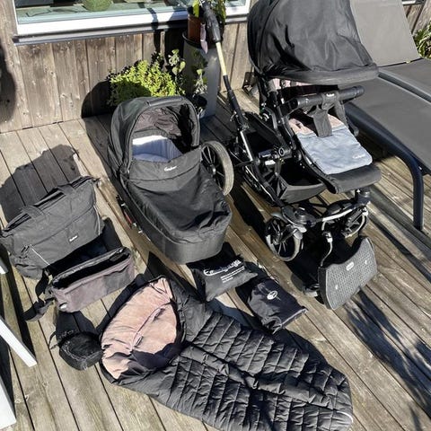 Barnvagn med ligg- och sittdel.