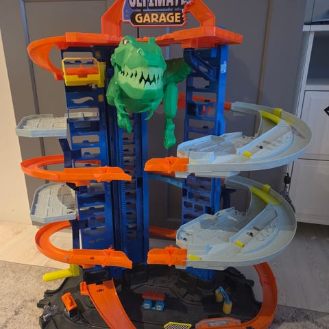 Hot Wheels lekset innehållande flera bilar, racingbanor, loop, mega garage och tillbehör.