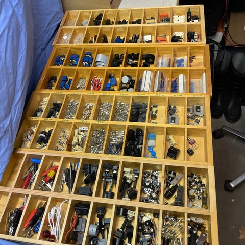 Komponenter enligt listorna sorterade i lådor