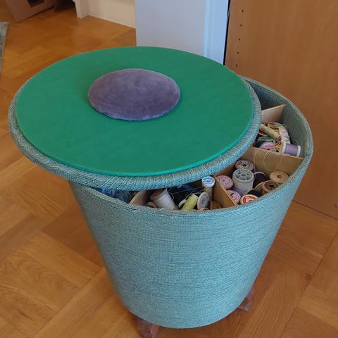 Vintage Pall Sittpuff med Förvaring Tyg Lin Grå ”Celotocaulis” Josef Frank