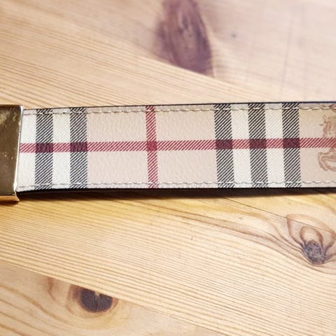 Oanvänt Burberry skärp i svart läder med silverfärgad spänne. Skärpet är vändbart med det klassiska Burberry-mönstret på ena sidan och slätt på det andra. Det levereras med kvitto, originalförpackning inklusive ask, påse och dokumentation.