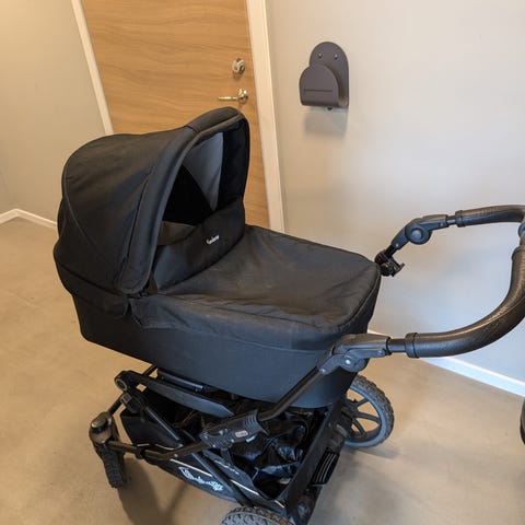 Vi säljer vår älskade NXT90 med både ligg- och sittdel, matchande skötväska (inklusive skötunderlägg), regnskydd och sol/myggskydd. Vagnen är lätt att fälla ihop och smidig att få in i bilen.
